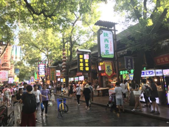 鐘鼓樓廣場在鐘樓和鼓樓之間,被稱為古城西安的“城市客廳”?;孛窠志嘟褚延猩锨隁v史,是西安著名的美食文化街區(qū),街道兩邊都是古色古香的仿古建筑,各種知名的西安小吃應有盡有。在各種各樣的特色美食之后,我們也結束了第一天的行程。